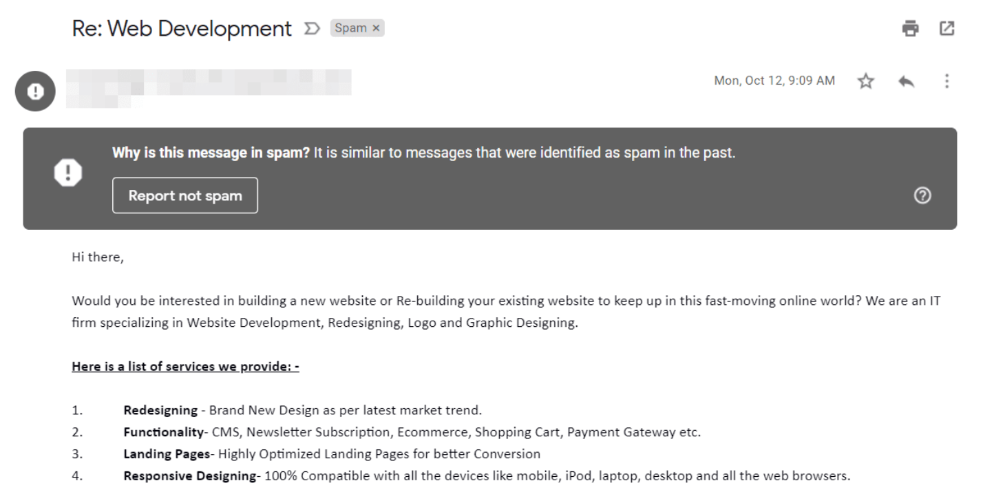 - Que el asunto es engañoso o que tiene un filtro que detecta spam como listas negras, donde están guardadas direcciones IPs que generan spam, o firewalls, sistemas que están hechos para bloquear el acceso no autorizado.