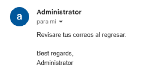Una vez realizado y actualizado, cualquier correo que nos llegue, será respondido de manera